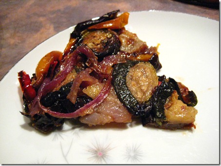 I forgot to take a picture of the roasted peppers and zucchinis. :( I was cooking four things at the same time so it skipped my mind.